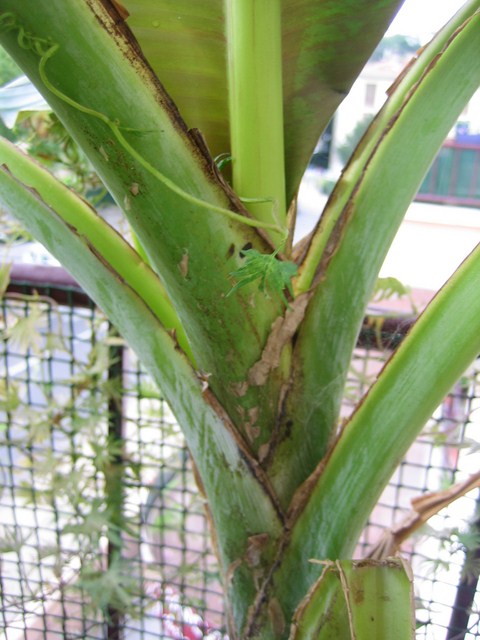 Il se trouve que je possède plusieurs plants de sikkimensis, certains de semis, d'autre achetés ou échangés. La constante, c'est le feuillage qui par rapport au basjoo est beaucoup plus épais, et donc bien moins sensible au vent. Le feuillage est également plus raide. Le petiole n'est jamais courbe et reste bien droit. La feuille est globalement moins longue, mais plus large que chez les basjoos.L'attache de la feuille au petiole ne diffère pas du basjoo. Enfin, tous les pieds ont une légère pruine sur les jeunes troncs, ce qu'on ne voit jamais sur un basjoo.