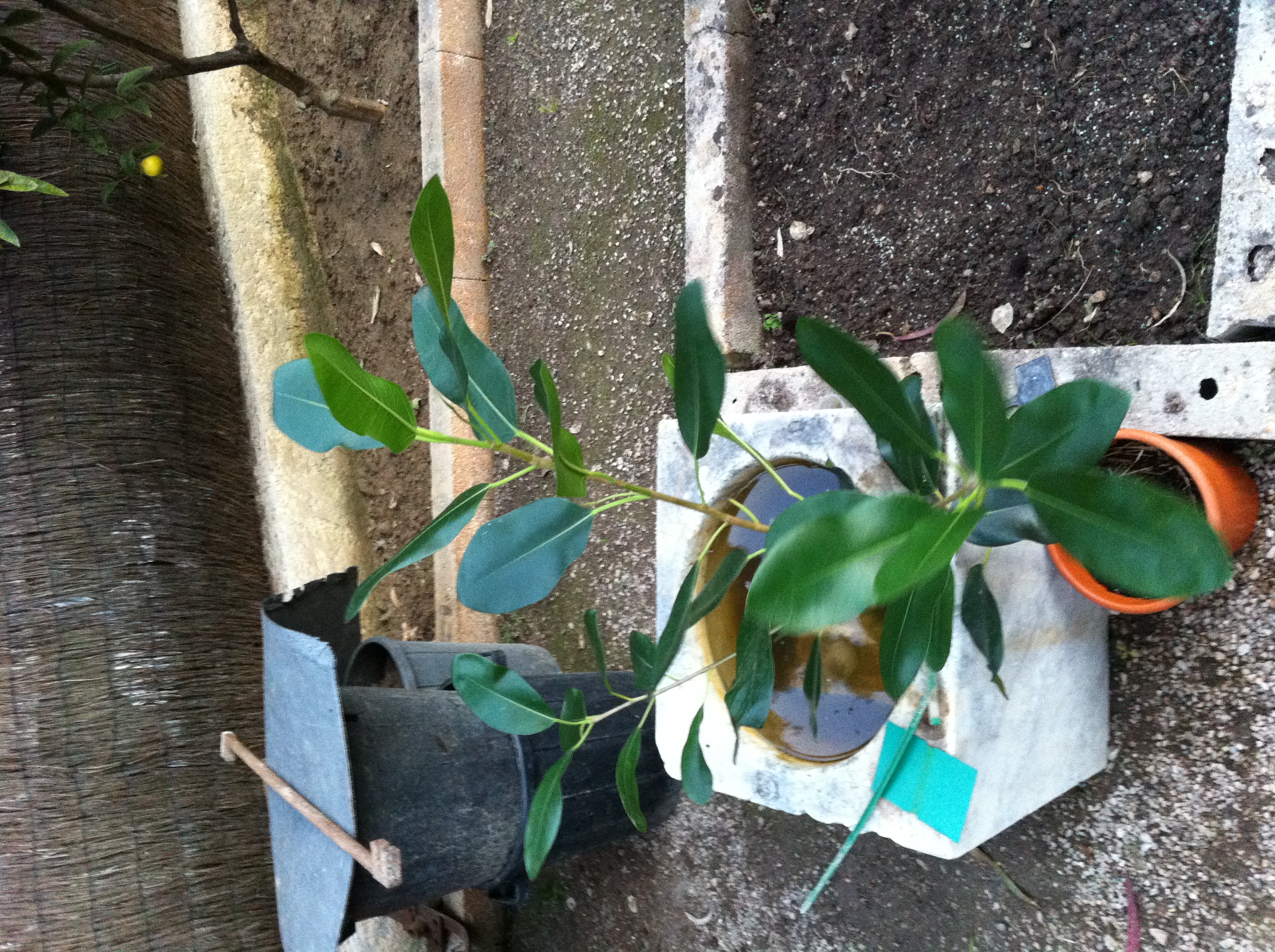 Voici un photo, petite précision la personne ma dit que cétait un Ficus australis, mais ce nom est synonyme de macrophylla il me semble, en tout cas l'aspect est semblable... il mesure 60 cm environ et a déja des racinnes aériennes. c'est un semis spontané récupéré et rempoté.