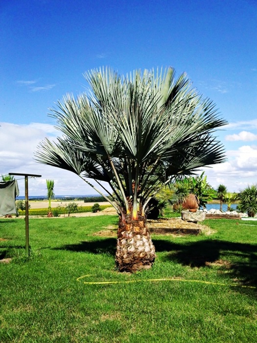 Sacrée surprise ce matin en voyant poindre la première inflorescence sur ce Brahea Armata après une vingtaine d'années de pleine terre