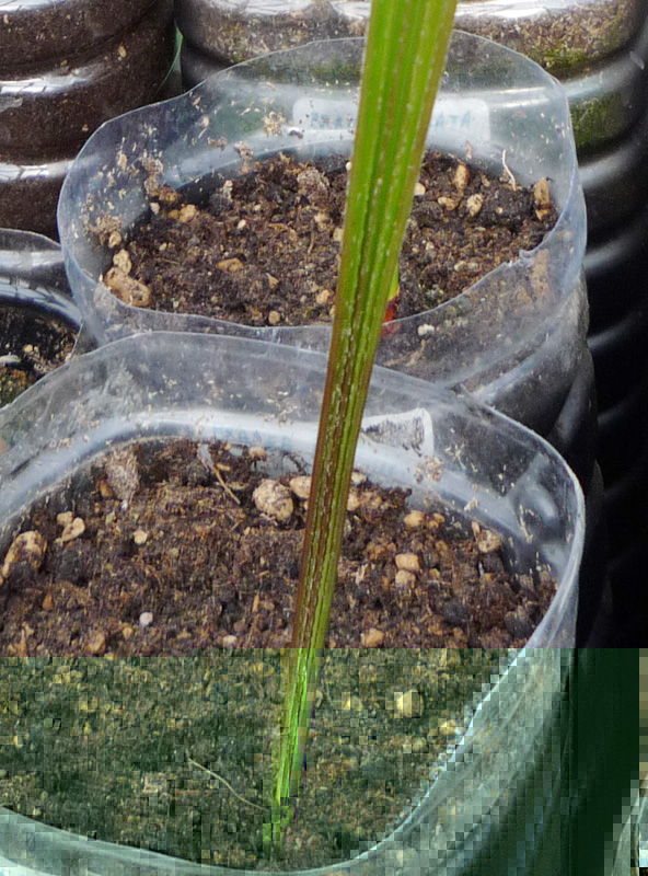 Je suppose que l'idéal pour l'identification serait que la plantule ai des feuilles divisées. Au fait après combien de temps les premières feuilles divisées apparaissent-elles chez le brahea armata?