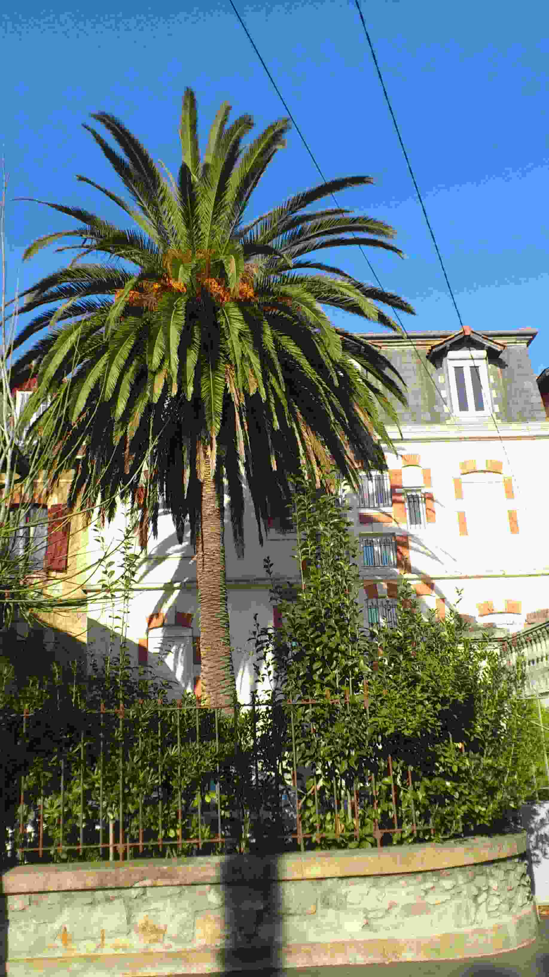 - beau phoenix canariensis plus que centenaire dans la cour d'une ecole privee aue l'on apercois depuis la rue pietonne de saint jean de luz.