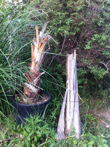 - un autre washingtonia que j ai deterré et mis en pot apres l hivers tout sec et un coco plumosa 'désolé je ne connais pas son vrai nom) qui n a jamais rien fait, sauvables?