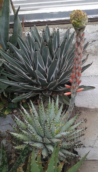 Derrière, c'est efectivement ferdinandi-regis (que je trouve plus beau que victoria-reginae) et devant il y a Aloe melanacantha (très joli et lent aussi!!)