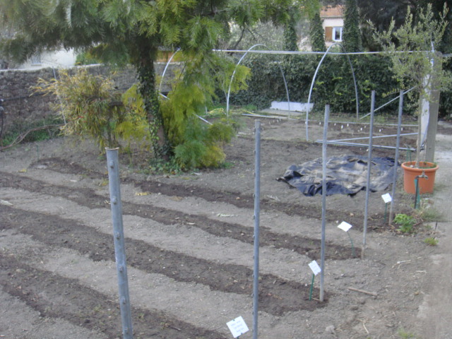 dimanche dernier , optimisation du potager...radis, pomme de terre dont la bonotte de Noirmoutier, haricot vert, petit pois, cœur de bœuf en serre , échalotes et oignons, maîs et légumes thais et plantation de framboisiers récupérés.