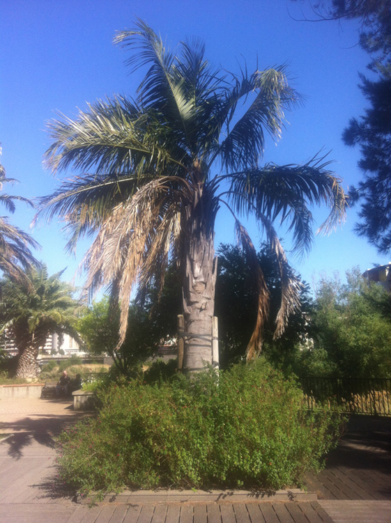 Pour défendre un peu ce palmier il y avait beaucoup de vent ce jour là et mon téléphone prend de très mauvaise photo,...mais effectivement la couronne parait faible en développement :|