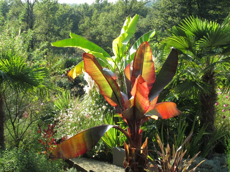 Bananiers, et un des plus grand palmier du jardin.