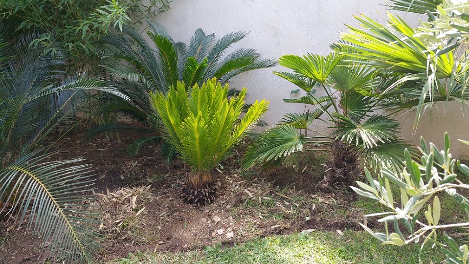 J'adore le stipe coupé de ton phoenix. Moi je suggère que tu le transformes en sellette pour pot de géraniums qui serait du meilleur effet ....