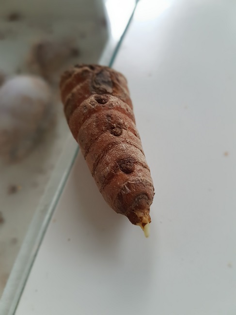 A J+15 le curcuma longa commence déjà à germer technique du sac en pastique et sopalin humide sur radiateur :D :D :D Pour le test dans du terreau sur radiateur il n'est bien sur pas possible de controler ...