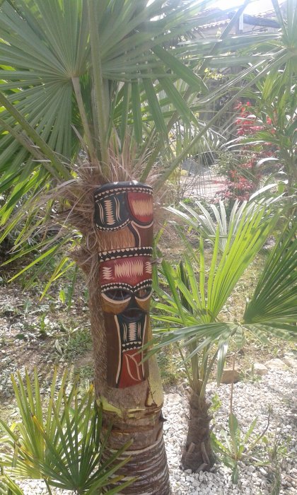Je vois que tu as déjà coupé les palmes abîmées de tes palmiers, perso je suis partisan d'attendre la fin du mois de Mai pour ce genre d'intervention : je considère que tant que les palmes restent vertes, elles participent à aider les futures palmes et le cœur à se refaire plus vite une petite santé.