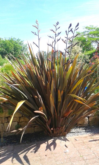 Phormium purpureum en fleur pour la première fois en 5 ans,5 fleurs joli pied de nez