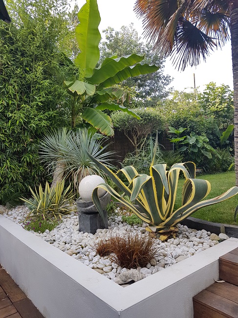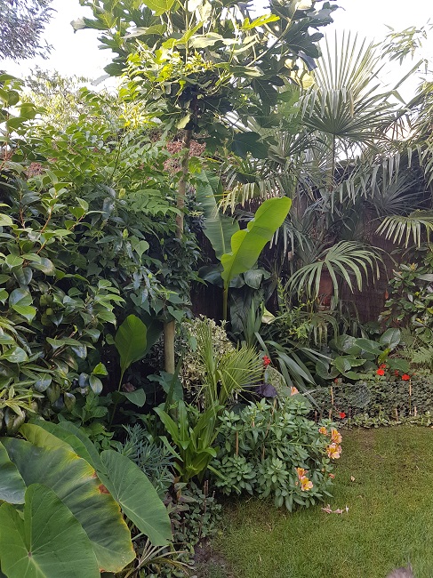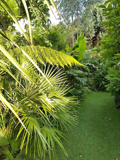 Tous ces beaux feuillages donnent vraiment un aspect très luxuriant à ton jardin: c'est vraiment très réussi!