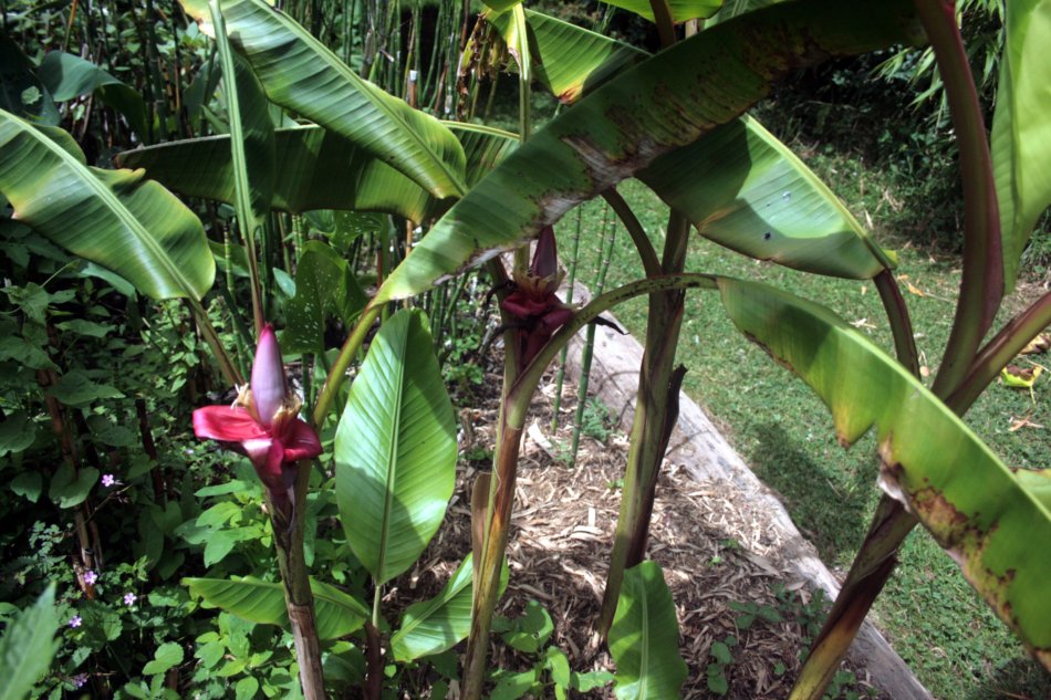 et pas loin , une inflo de helen's hybrid en phase femelle , là , il a fallu prendre l'échelle pour la photo , c'est une belle : 6eme main , 10/12 bananes par main , ce qui fait déjà 60/70 bananes en devenir :shock: , je sais pas si elles vont grossir par contre :roll: