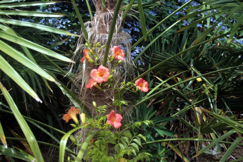 j'ai envoyé une bignone sur un trachi , il y a des hortensia bleu derriere , ca devrai etre joli avec les années
