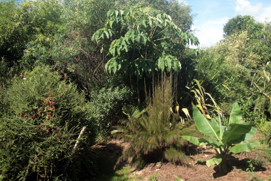 je connais mal le Rubus trifidus, mais ça à l'air pas mal pour accroître le nombre des feuillages à allure tropicale.