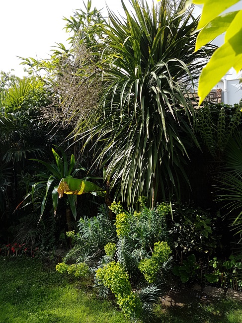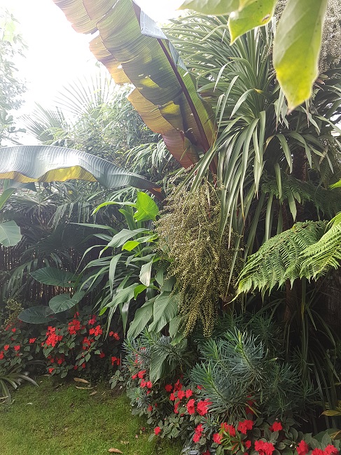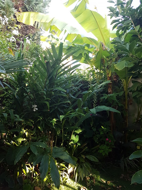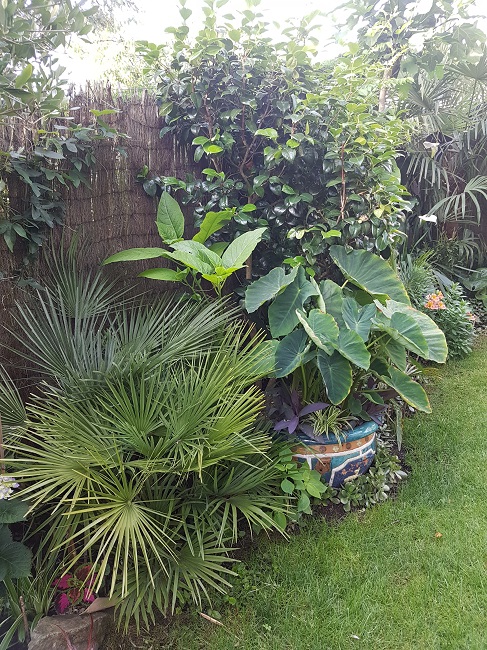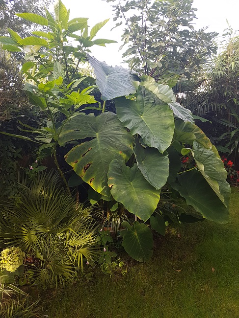 Coté colocasia, j'ai mesuré les feuilles, elles font plus d'un mètre de longueur et avec le pétiole elles se hissent à plus d'1m80 de hauteur.