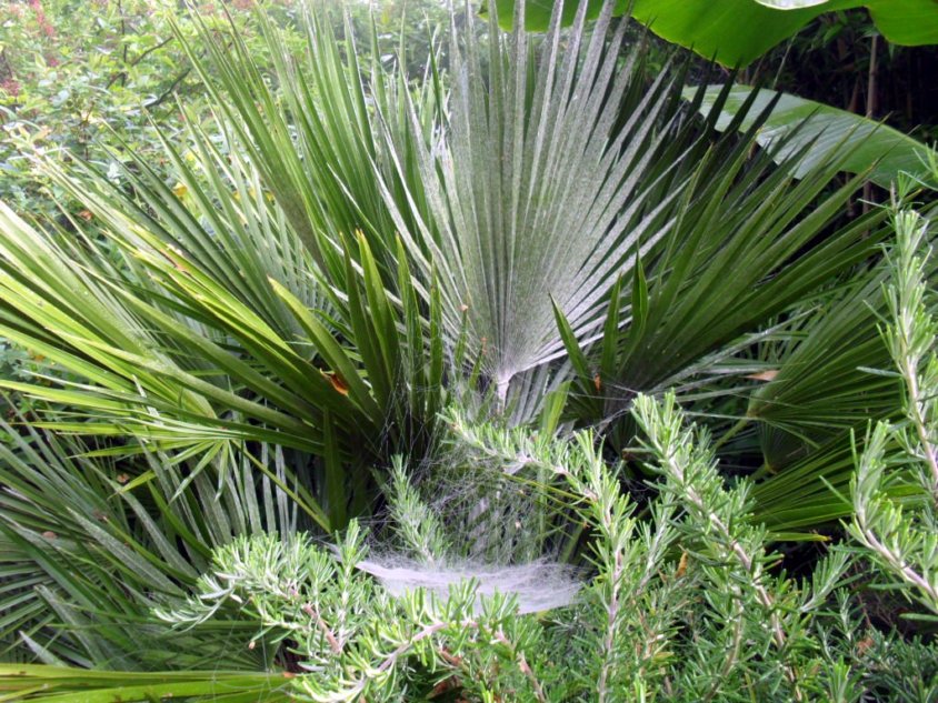 Tant que les palmiers ne sont pas vraiment lancés en vitesse de croisière , je ne coupe pas trop les anciennes palmes ...