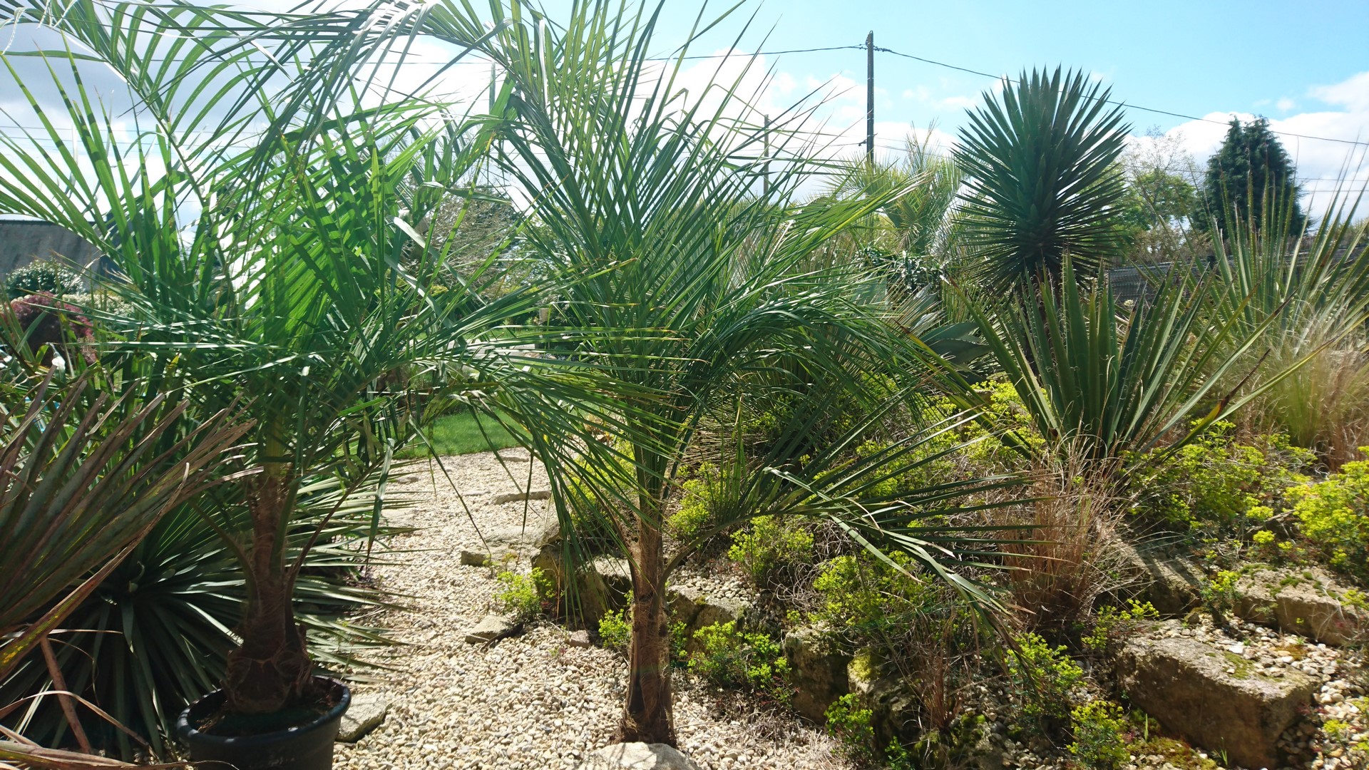 il va s endurcir c est tres certainement du palmier cultive sous serre avec 1 bonne tambouillemitch56 a écrit :Steph, moi je dirais dans ton nouveau coin que tu aménages il sera peut être plus abrité . Je vois le mien je l ai planté a un endroit pas spécialement surexposé , la il c'est bien ouvert en quinze jours et avec les petits coup vents de cette semaine j ai du le fermer car il avait des pinnules de cassées....après il va s'endurcir. L autre a l air de vouloir reprendre tranquillement la lance a poussé d une dizaine de cm en peu de temps...je vais continuer les bons soins