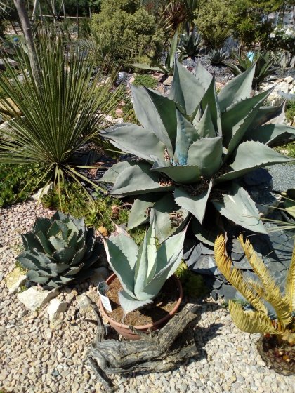 Tu as fait, quoi qu'il en soit, une très belle acquisition! :D Je remarque aussi que sur cette photo, on aperçoit de très belles "exotiques" juste à proximité de ton nouvel agave (chamaerops cerifera bien bleuté je crois et un petit agave aux feuilles vertes...). Une mise à jour de ton jardin s'impose: tu dois avoir quelques massifs qui commencent à devenir franchement "sympas". Vite, vite de nouvelles photos! :wink:
