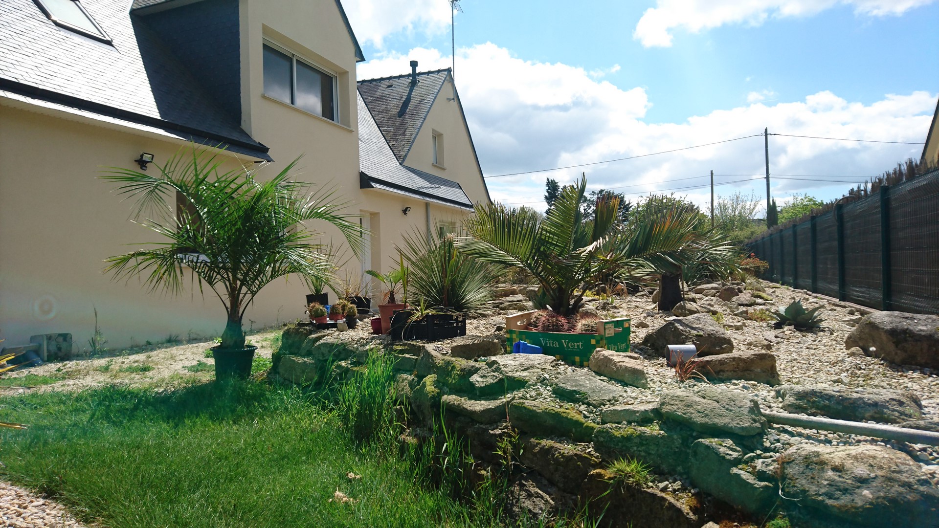 Perso il faut dissocier un peu ton espace rocaille doit rester rocaille et ta partie ouest que tu trouves moche pourrais être employé pour planter tes butiagrus dans cette zone ombragé ou tu pourrais y planter des fougères arborescente et autres, cordyline indivisa esprit sous-bois et tu planterais des gunnéras érable japonais,etc...et tes butiagrus dans la partie la plus ensoleillé.De par leur forme ils apportent un effet de volume verticale. Leur beauté et souplesse,effet plumeau apporte une élégance et une luxuriance qui pourrais faire de ce coin un endroit valorisant autres que xérophytes,tu pourrais passer du côté épiphyte