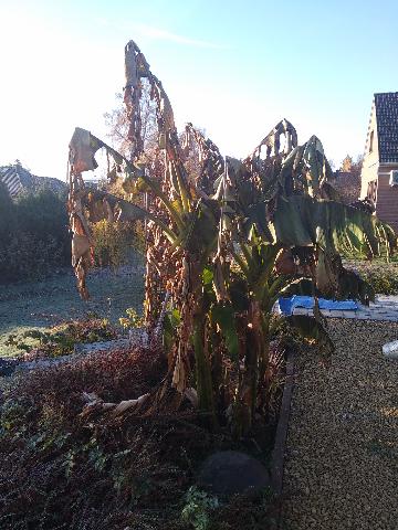 L'année dernière j'avais protégé mon bananier dans un tube, enroulé de laine de verre, et il avait pourri.