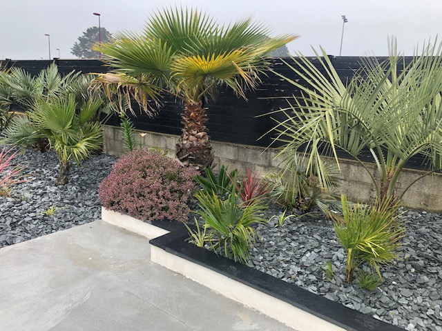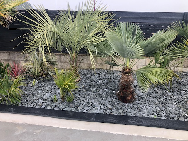 L'ardoise met bien en valeur tes palmiers et se s'accorde bien avec le style moderne