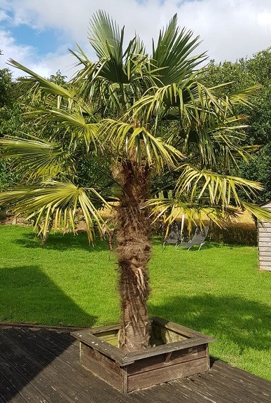 On a acheté une propriété il y a deux ans avec 2 Trachycarpus fortunei. La maison et le jardin ont été construits et planté il y a 12 ans environs et je pense que c'est aussi à ce moment là que les palmiers y ont été plantés.