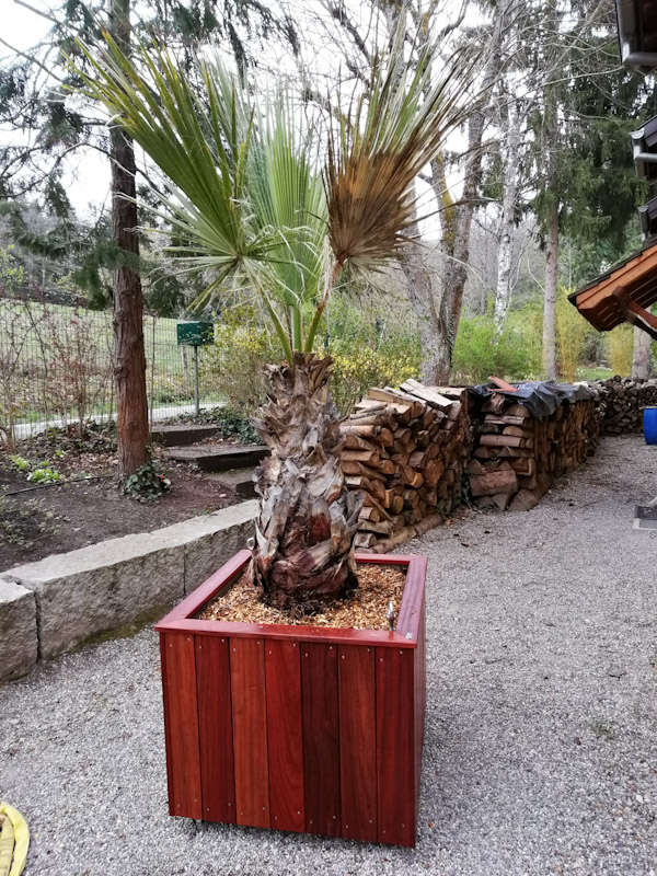 Aujourd'hui, finalisation de mes 7 nouveaux bacs maison, avec une couche d'huile en finition , pour les nouveaux palmiers en acclimatation.