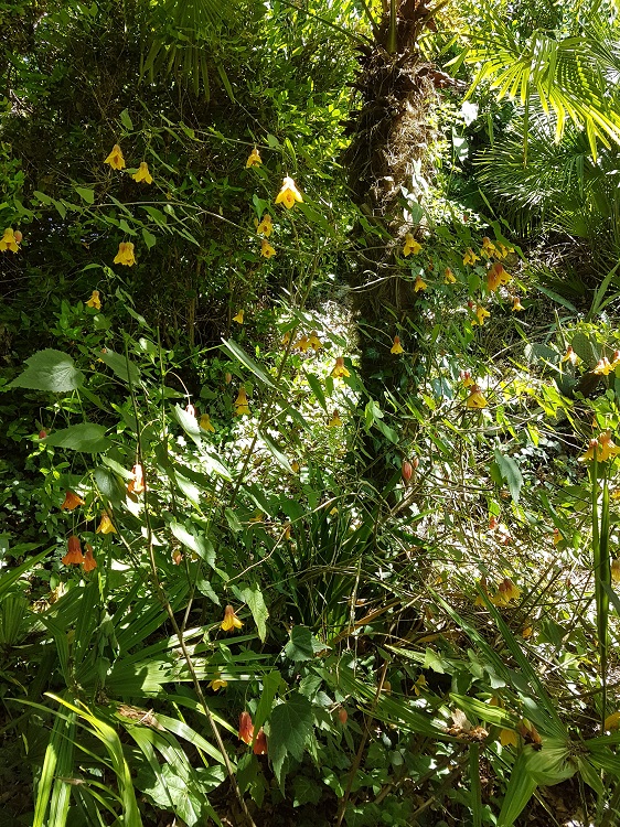 Abutilon en sous-bois sec, 'Kentish bell' et 'Patrick synge'