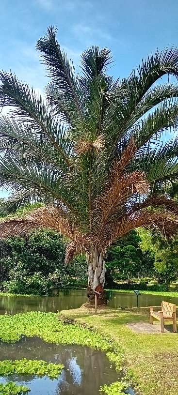 Le Raphia et le Hyphaene sont du magnifique jardin botanique de Durban, le Raphia pousse extrêmement vite et est monocarpique, fleurit une fois puis meurt. Le Hyphaene ici a 120 ans, espèce de pousse extrêmement lente et dans la nature est plus bleu.