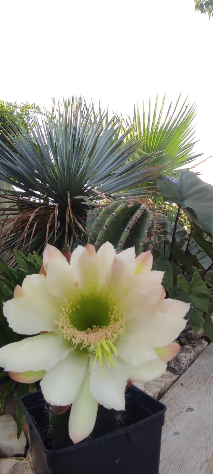 Et enfin, le cadeau de voisins qui aiment les mêmes plantes que moi! Ce cactus qui en est à sa deuxième fleur énorme et qui ne dure qu'une nuit !