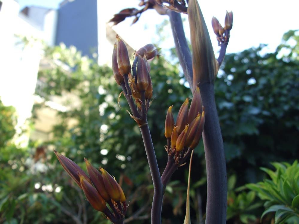 Je suis trop content j'ai mon phormium tenax variegatum qui commence sa floraison... :D