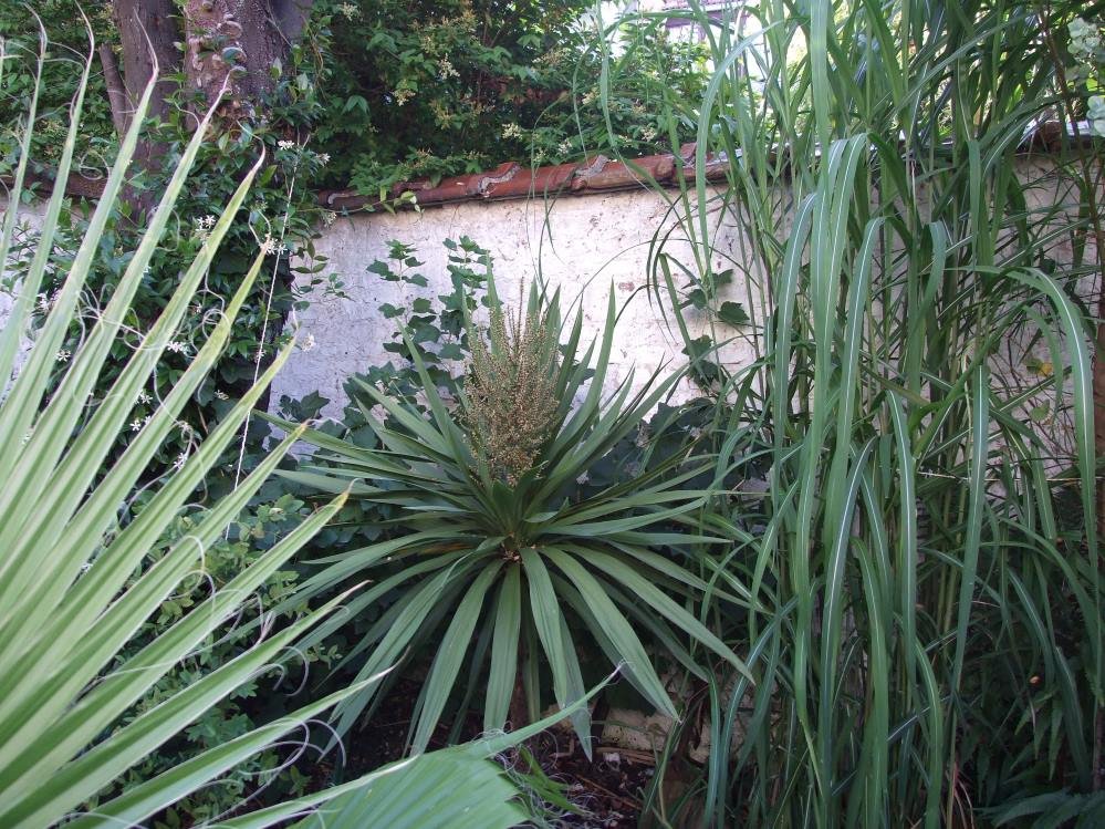 la lance qui revient du bermudana est là mais elle sort vraiment d'outre tombe, il n'y a pas d'autre mot, elle semble encore fragile et il y a beaucoup de vide autour d'elle... en plantant ce coco je vais le chouchouter cet hiver pour qu'il arrive à passer le cap.
