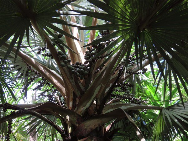 Superbes ces revers de palmes de Kerriodoxa elegans, nos Tracycarpus princeps feraient presque pâle figure à côté. L'Aïphanes en jette !