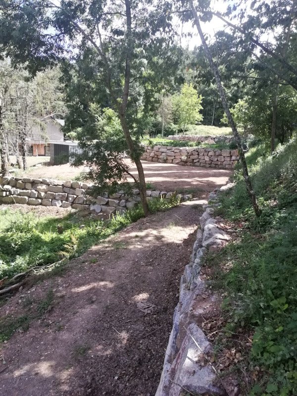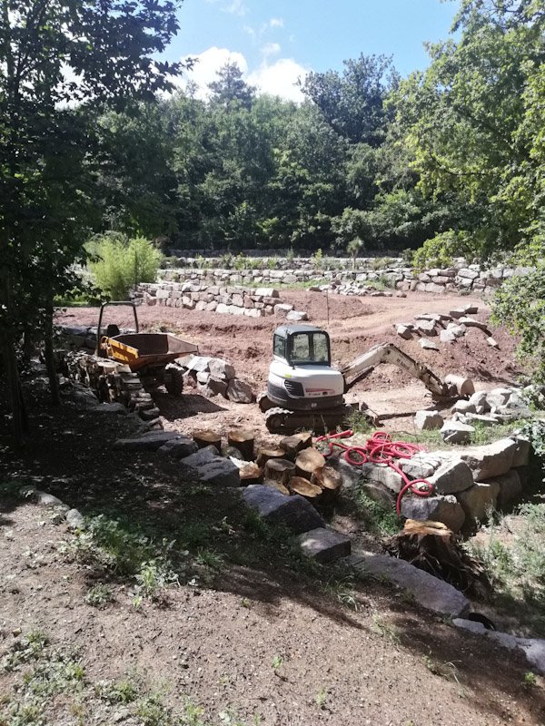 Vues des aménagements du terrain en pente en 4 terrasses, fin des travaux prévues l'année prochaine