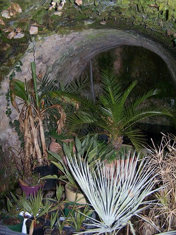 Une petite photos sympa de 2012 avec mes trachy de récup. puis en arrière plan le fruit de 3 années de rénovation totale quasi seul... sous la petite voute se trouve un bassin alimenté par une petite source, c'est là que mes plantes en pot ont passées l'hiver sans problemes. Sur cette terrasse en premier plan sera implantée une piscine mais je ne sais pas encore quand vu que tout ici passe par l'autoconstruction