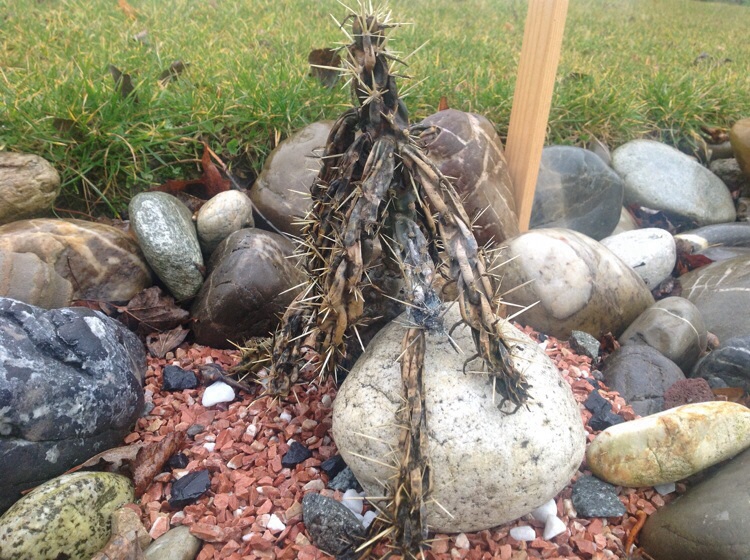 Opuntia rapporter de capri, a perdu 2 oreilles formée cet été, mais la base est en bon état, protection anti-pluie, premier hiver.