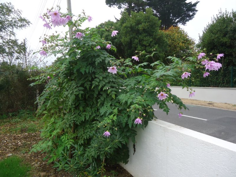 En ce mois de novembre les 3 touffes de Dahlias arborea imperialis , sont en pleine floraison , dont le plus important qui est à 1 m 50 de la mare d'un voisin