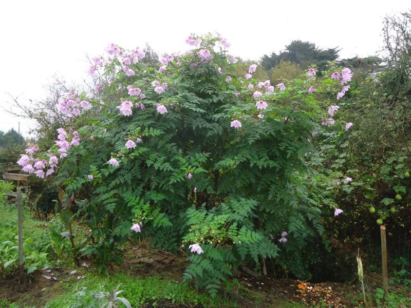 .Il est très mellifère au vu des abeilles et bourdons qui butinent ses fleurs .Il fait pratiquement 4 m .