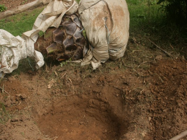 Puis faire un ptit trou (je me suis arreté a la couche d argile ,il manquais 15-20cm pour couvrir la motte ,ca fera un nouveau massif surélevé) Une échelle pour la taille de la motte