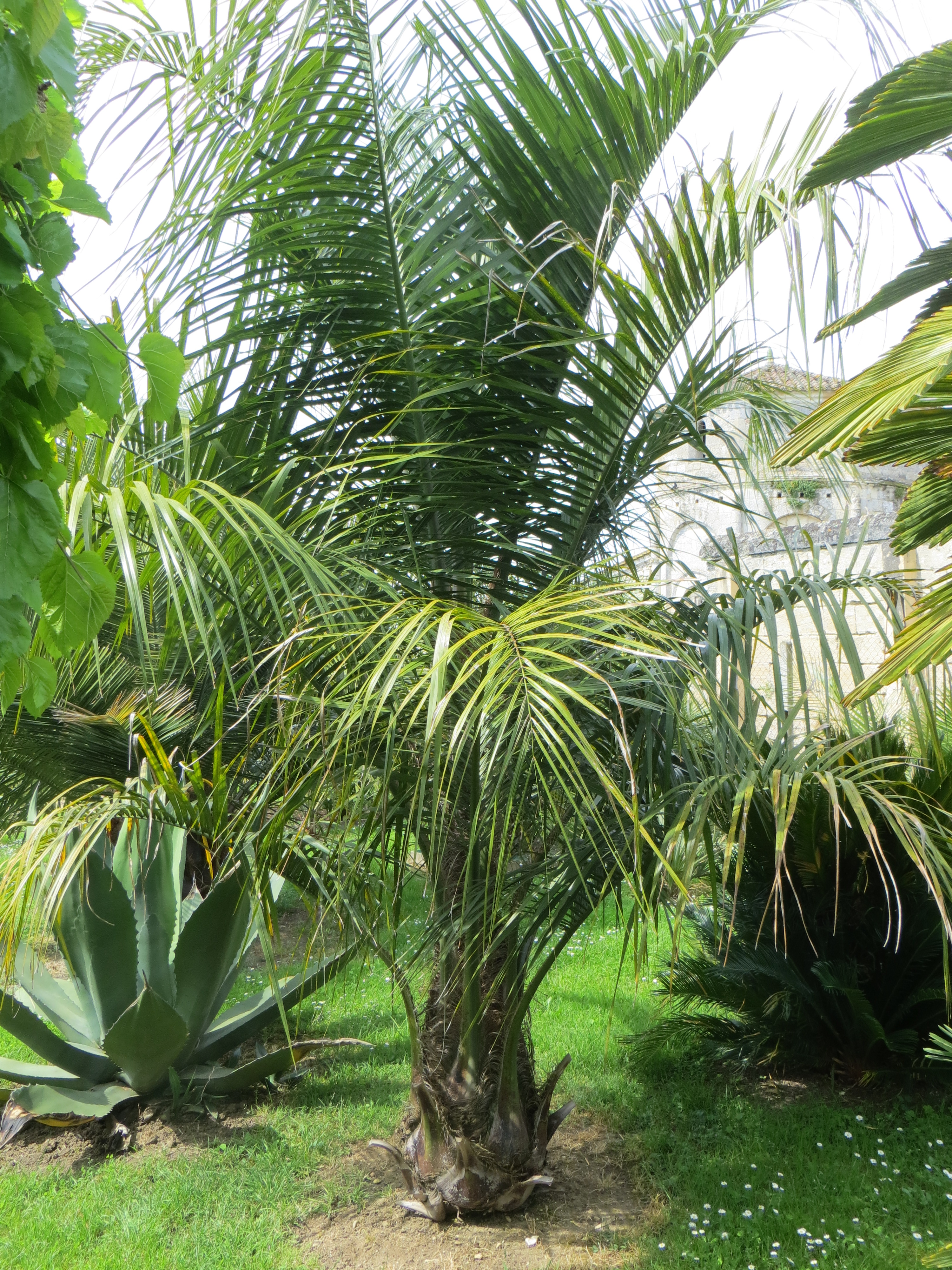 Pierre31 a écrit : Certes il a un port plutôt érigé et son stipe est bien plus étroit que celui d'un phoenix, par exemple, mais les palmes finissent par s'étaler, à moins de les couper avant maturité. :?