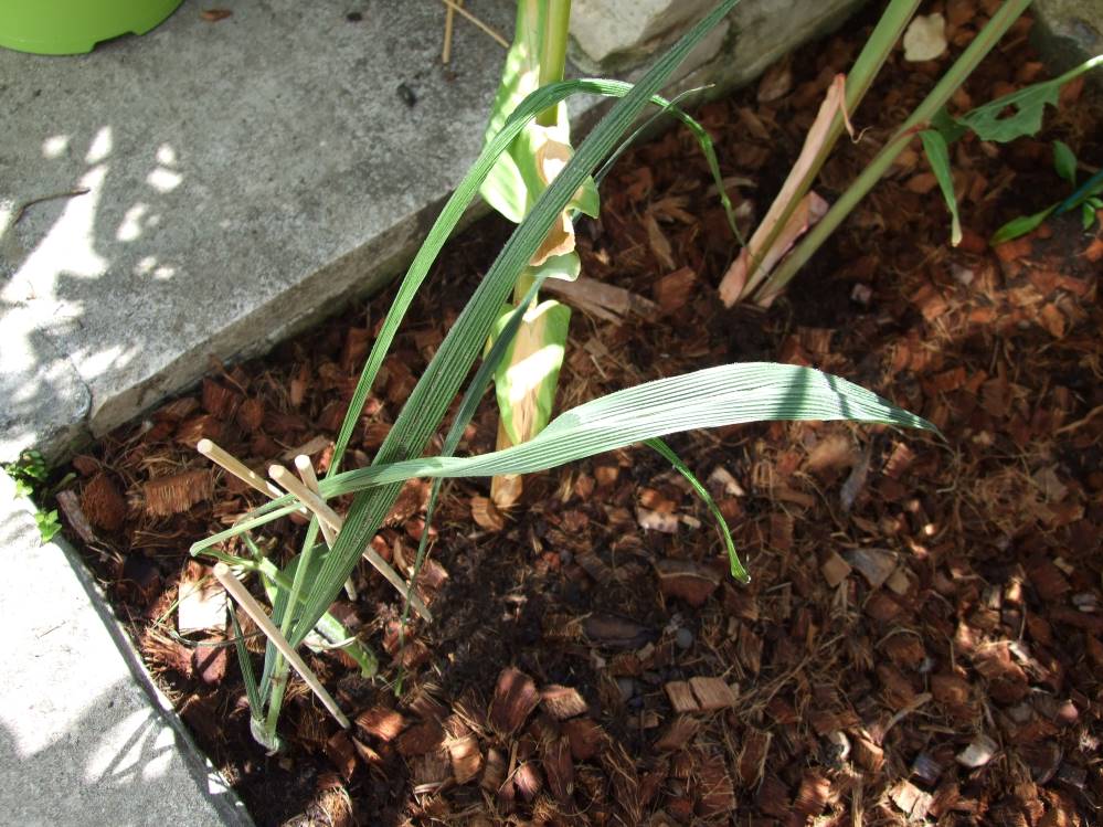 Dans l'ancien bassin j'ai installé deux hedychiums déjà en feuille, un assam orange, et l'autre je ne sais pas il vient d'une serre de Meise. J'ai aussi ajouté mais évidemment ça ne se voit pas encore deux énormes souches de deux autres hédychiums rustiques ( achetés lors d'une fête des plantes au sud de Bxl).. j'ai hâte de les voir monter ils ont l'air très prometteur..