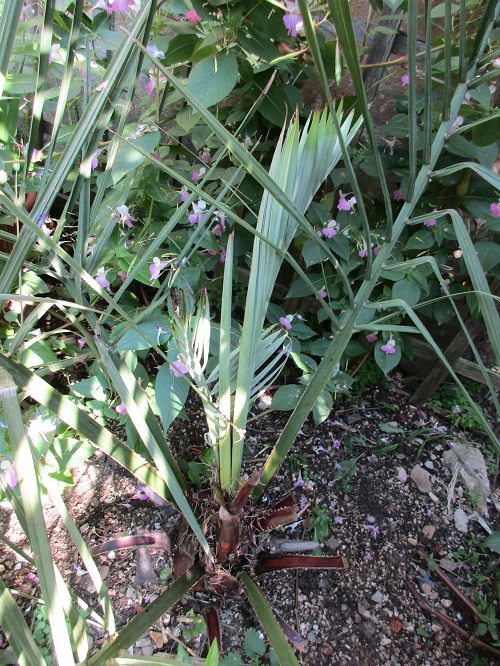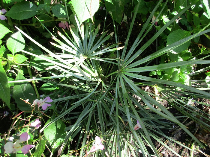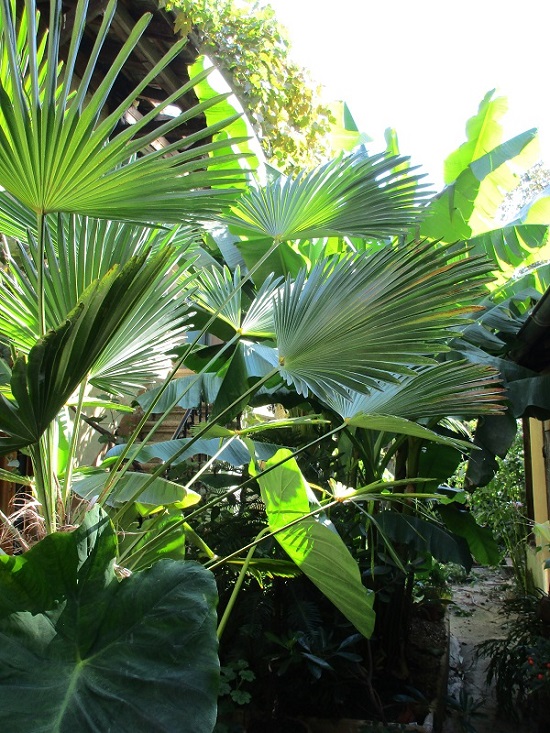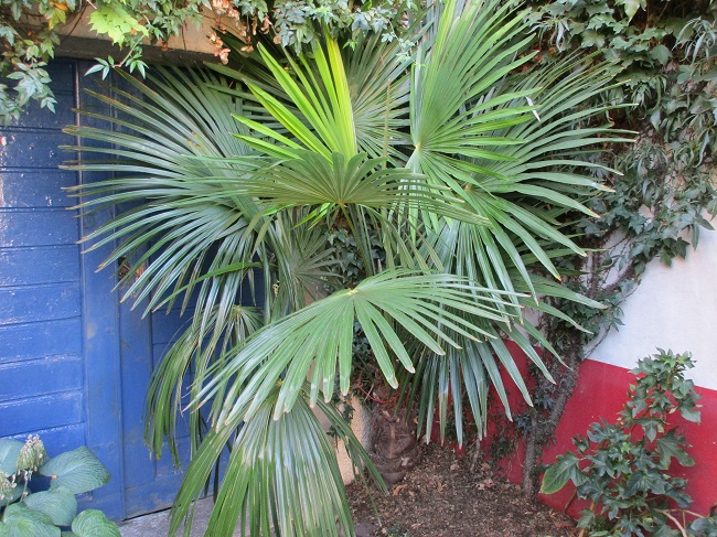 Il obture agréablement la moitié de ma porte d'entrée,et ne fait que quelques palmes par an(jusqu'à 7!)il est donc assez lent dans cette situation ombragée