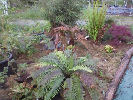 Grosses plantations : cyathea australis n°1 , blechnum nudum n°1 en fougeraie et le lomatia ferruginea et une idée de ma futur protection au soleil sur ma fougeraie ,ça fait plaisir au bon endroit ça commence à causer enfin pour le phyllostachys auresulcata aureocaulis