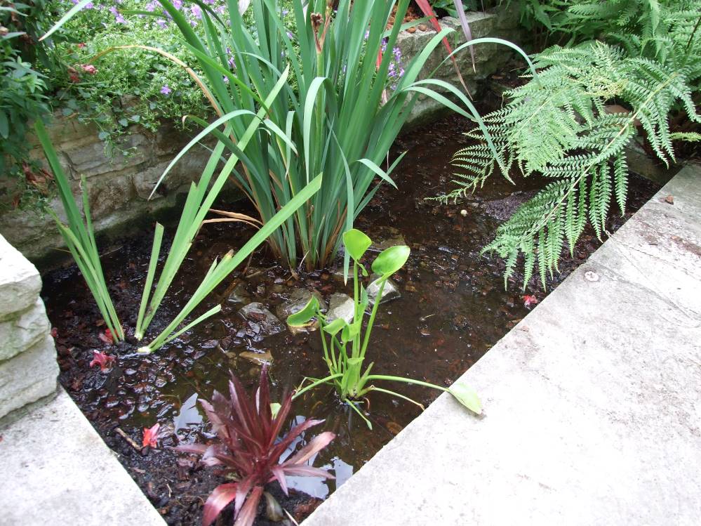 Dedans à la place, j'y avais mis un beau pied d'iris sibirica, j'en ai ajouté un un autre assez rouge, ainsi que de la lobelia cardinalis, et de la pontederia cordata qui je trouve a de petits airs de dealbata..