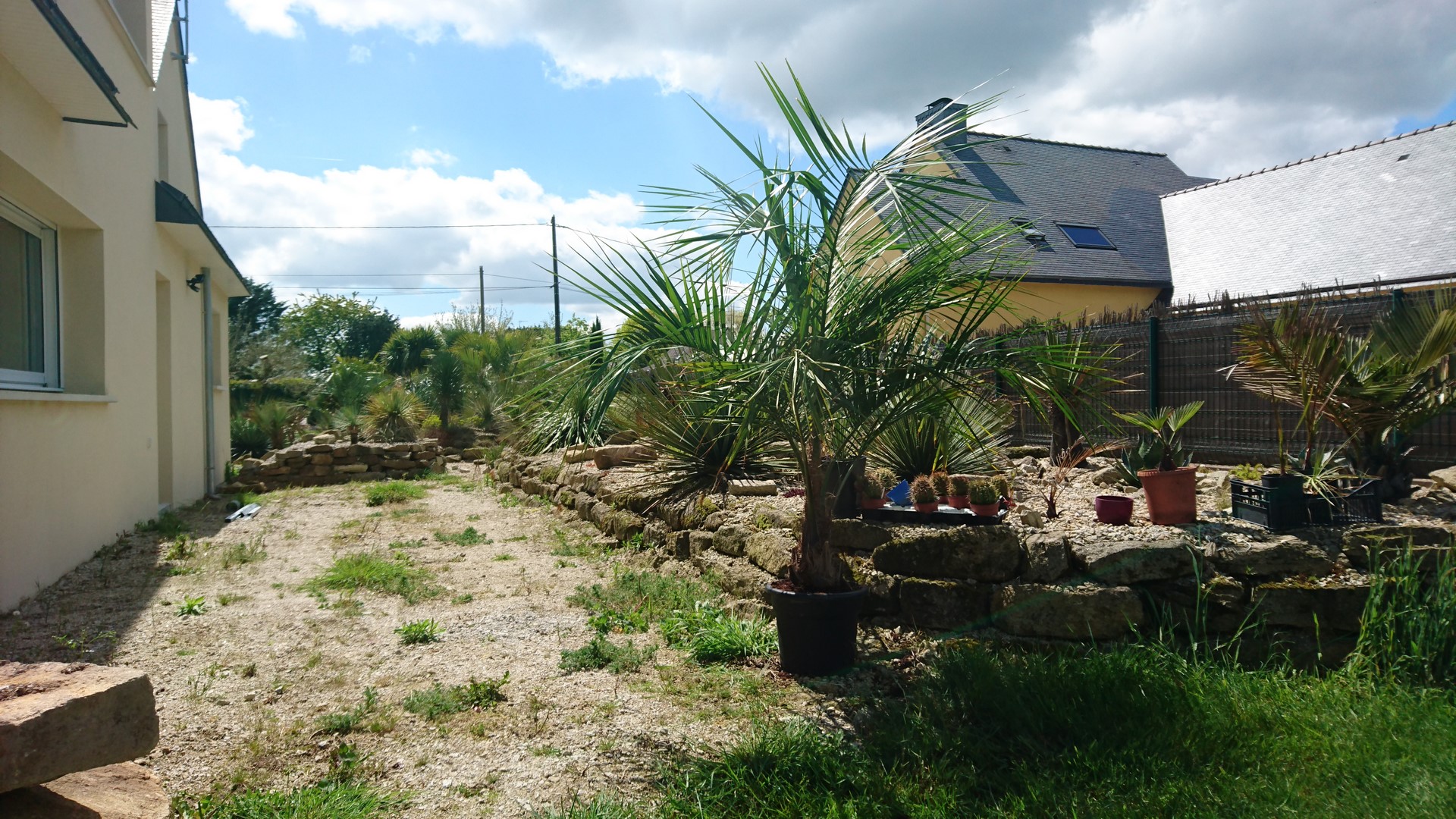 Perso il faut dissocier un peu ton espace rocaille doit rester rocaille et ta partie ouest que tu trouves moche pourrais être employé pour planter tes butiagrus dans cette zone ombragé ou tu pourrais y planter des fougères arborescente et autres, cordyline indivisa esprit sous-bois et tu planterais des gunnéras érable japonais,etc...et tes butiagrus dans la partie la plus ensoleillé.De par leur forme ils apportent un effet de volume verticale. Leur beauté et souplesse,effet plumeau apporte une élégance et une luxuriance qui pourrais faire de ce coin un endroit valorisant autres que xérophytes,tu pourrais passer du côté épiphyte