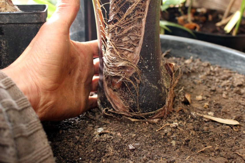 Tu vas être obligé de planter une partie du stipe du trachy non ? vu qu'il a très peu de racines !