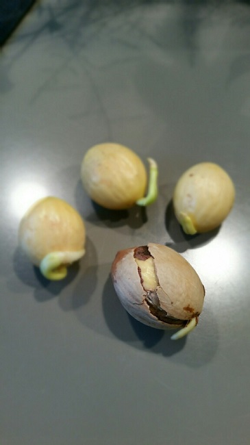 Musa velutina mis à germer le 15/11/2015 : les premières pousses sont sorties depuis quelques jours mais encore très modestes.