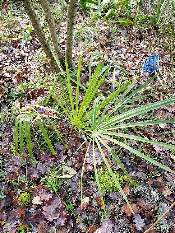 On avait déjà évoqué sur le forum, il y a longtemps..., ces trachys mâles qui fructifient parfois. Pas si rare que ça en fait, j'en ai un moi aussi qui porte souvent des graines à l'extrémité des inflorescences. Je n'ai jamais fait l'expérience d'un semis pour voir si elles sont viables, ça serait intéressant