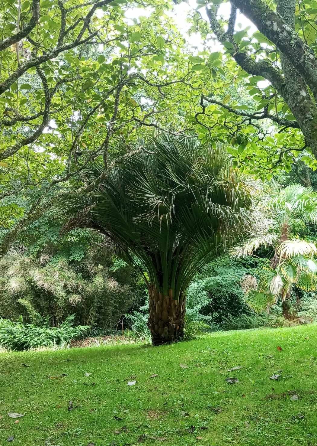Son stype d'une épaisseur prodigieuse et sa densité de feuillage qui semble inextricable me font penser à un butia similaire au jardin botanique de Brest. Je posterai une photo si je la retrouve.