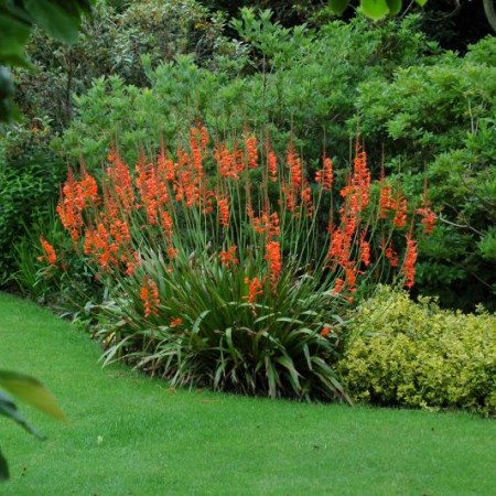 - Watsonia densiflora plus petite entre 1m et 1.2m - 7° fl rose ou blanche feuillage persistant
